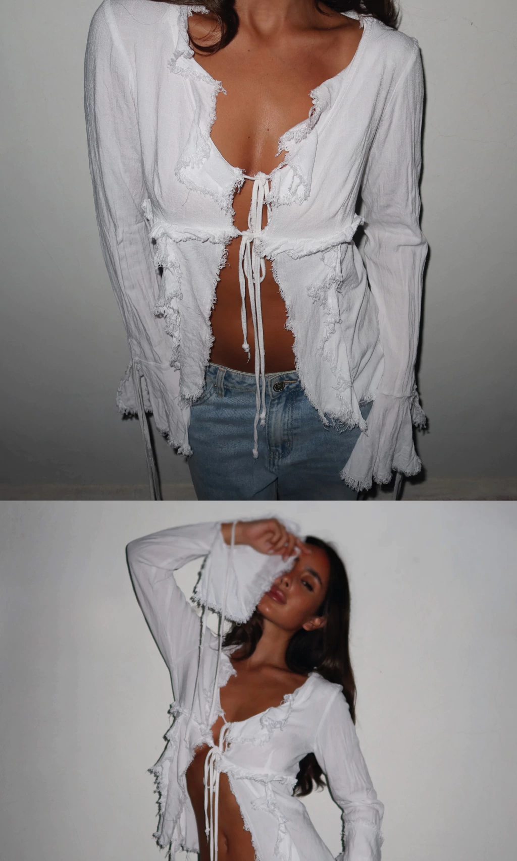 Una camisa sensual, cómoda y versátil, de esas que resuelven cualquier look.